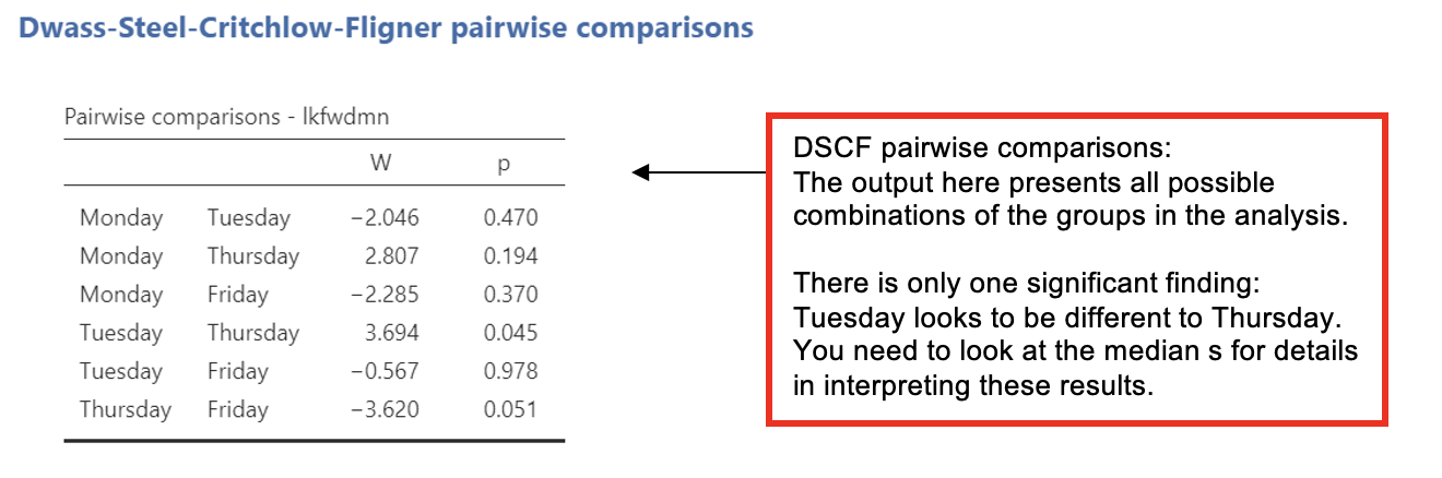Jamovi output Kruskal-Wallis Test Post-Hoc