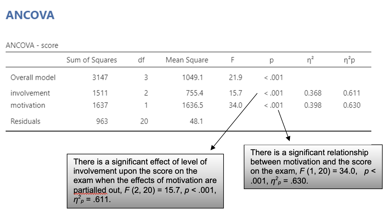 - Interpret the Jamovi output of an ANCOVA and write up an ANCOVA