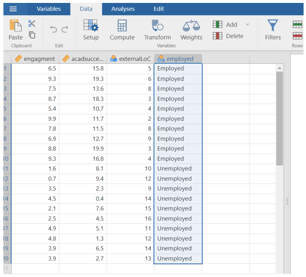 Here we will show you how to amend the type of data each variable represents in Jamovi.