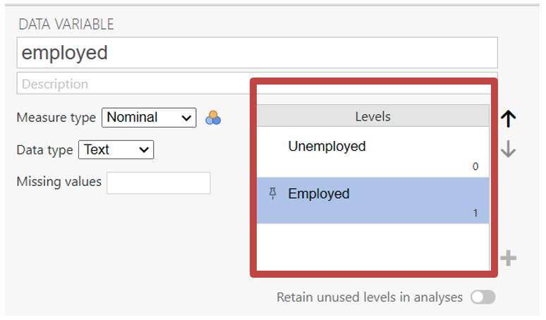 If data is nominal or ordinal, you can include levels. Levels are the possible options people have to choose from. For example, responses on a Likert scale or saying if they are employed.