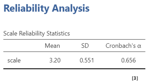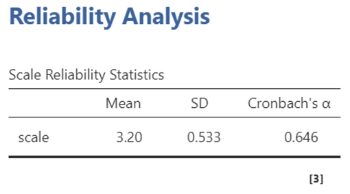 Jamovi does not offer a built-in, dedicated procedure specifically labelled as “item analysis.” However, you can perform item analysis and calculate Cronbach’s alpha indirectly using Jamovi’s available statistical analyses, by conducting a “reliability analysis”. Through this analysis, you can obtain Cronbach’s alpha coefficient, indicating the internal consistency of the questionnaire (e.g. how well your items correlate with the total of the questionnaire). Additionally, you can explore item-total correlations to assess how each item correlates with the total score of the questionnaire.