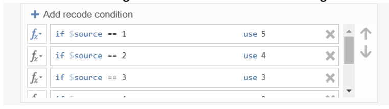 To add a new recoding condition, click on “+ Add recode condition” button.