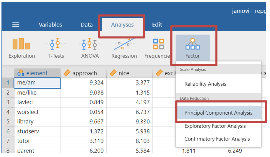 Using Jamovi to carry out a factor analysis (Principal Components Analysis)