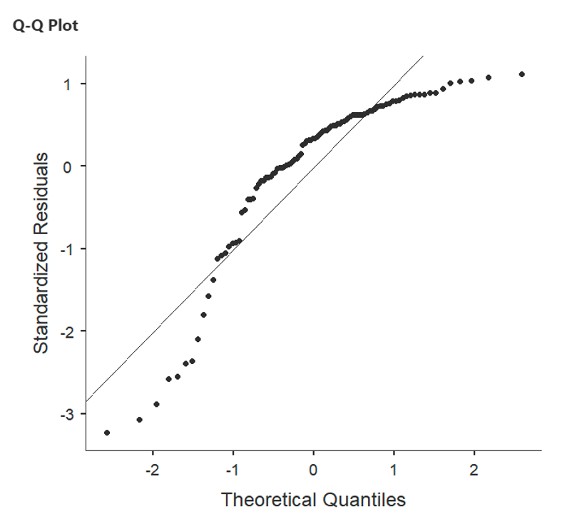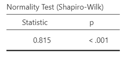 - Assumption of normality or “Normality Test (Shapiro-Wilk)” table is the assumption that the distribution of the residuals should be approximately normally distributed, with a mean of zero. A p-value lower than 0.05 suggests that the residuals do not follow a normal distribution, and you may wish to select another test. This can also be checked with the QQ plot. If the points on the Q-Q plot closely follow the diagonal line, it suggests that the residuals are approximately normally distributed, supporting the assumption of normality.